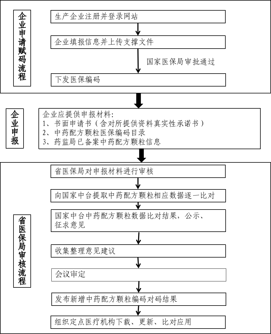 为贯彻执行国家医保局对中药配方颗粒医保编码标准的有关要求,做好我省中药配方颗粒医保编码对码应用工作,结合工作实际制定工作流程如下: