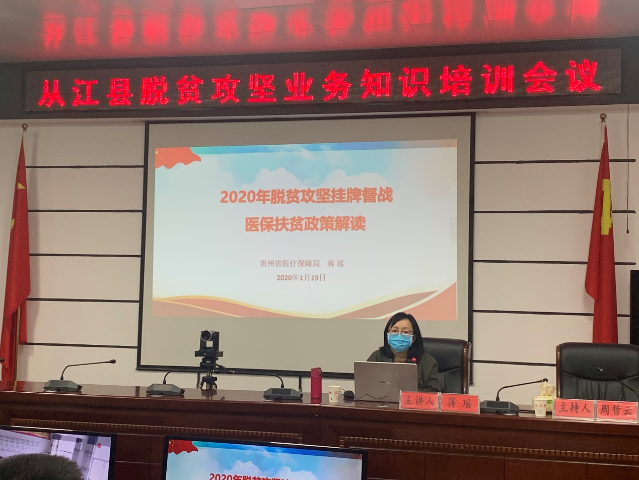 为更好支持和帮助从江县扎实做好医疗保障扶贫相关工作,确保如期高质量打赢脱贫攻坚战。应从江县脱贫攻坚指挥中心办公室邀请省医疗保障局脱贫攻坚领导小组办公室负责人蒋瑶赴从江县参加脱贫攻坚业务知识培训会议并授课。