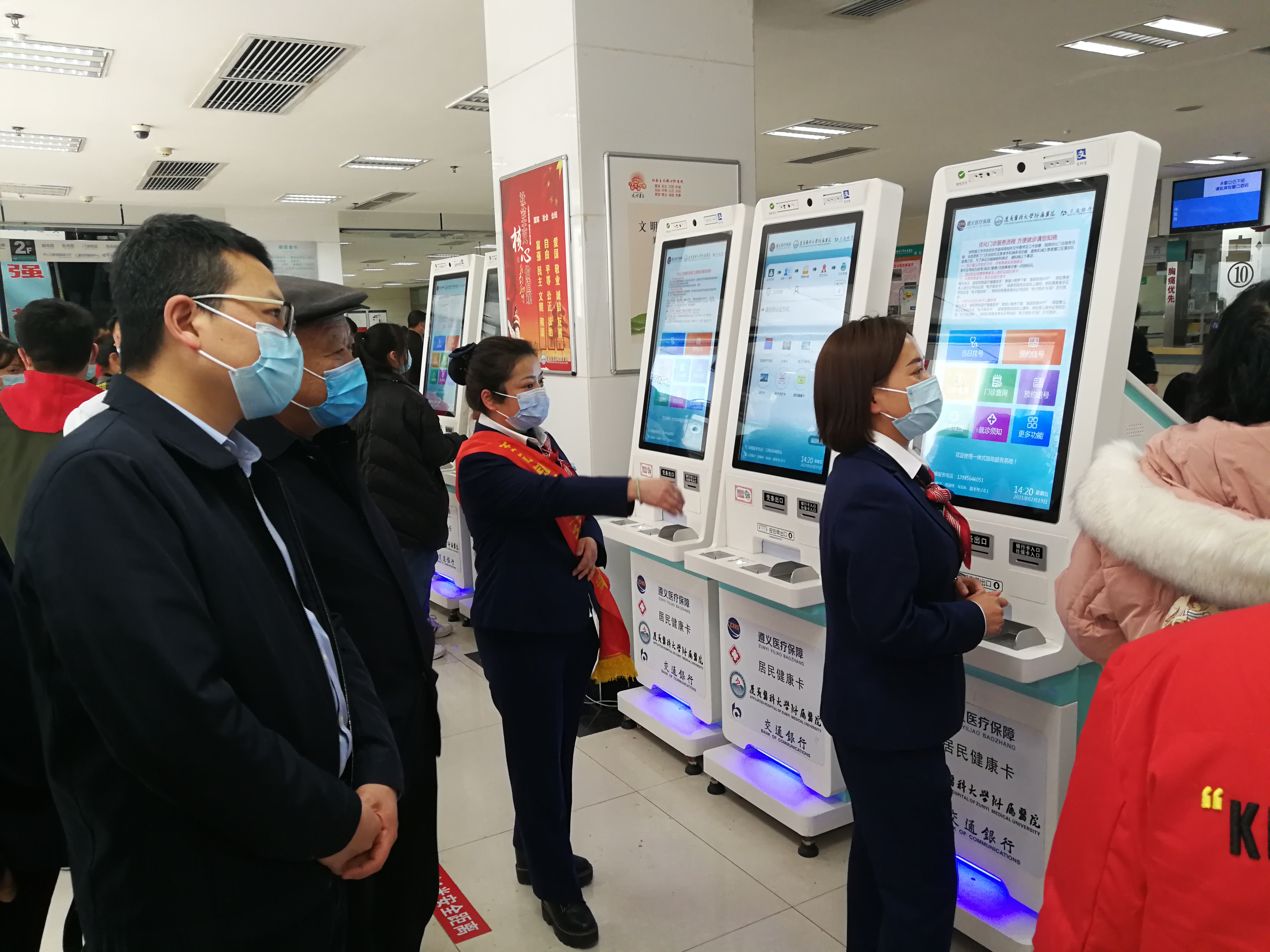 调研组一行先后到遵义市红花岗区医疗保障局、遵义市第一人民医院、遵义医科大学附属医院开展实地调研,通过召开工作座谈会、现场走访等方式听取医保基金监管工作意见和建议。期间还现场查看遵义医保诊间支付、门诊一站式服务等便民利民举措实施情况,以及部分定点医药机构规范使用医保定点标牌执行情况。