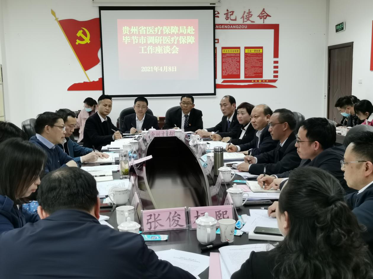 为深入贯彻落实习近平总书记视察贵州重要讲话精神,扎实开展党史学习教育和“牢记殷切嘱托、忠诚干净担当、喜迎建党百年”专题教育,4月8日至9日,省医疗保障局党组书记、局长吕劲松带队赴毕节市开展党史学习教育和“牢记殷切嘱托、忠诚干净担当、喜迎建党百年”专题教育工作调研。省医疗保障局相关负责同志,毕节市及七星关区、黔西县相关负责同志参加。
