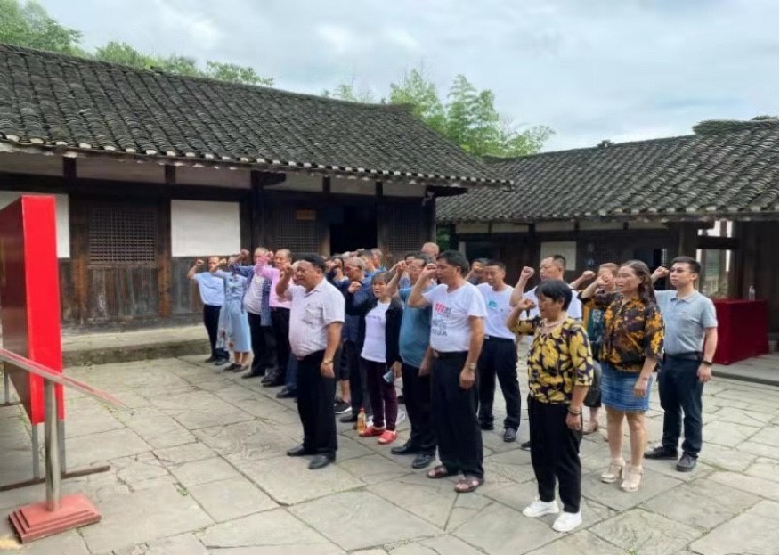 在苟坝会议会址,全体党员在革命遗址前重温入党誓词、重忆入党初心。活动现场,在大坝河村党支部书记的领誓下,全体党员面对鲜艳的党旗和入党誓词,举起右手庄严宣誓,通过重温入党誓词的方式,传承红色基因,强化了党性意识。