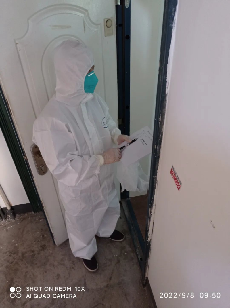 凌晨4点半,闹钟准时响起,省医保基金运行服务中心党员王怡帆像往常一样,起床简单收拾后,便匆忙赶赴观水馨苑小区,准备开展新一天的核酸检测工作。天还未亮,她和志愿者们借着微弱灯光,先进行抗原试剂自测,然后熟练换上厚重的防护服,便分布各点开始一天的忙碌。当完成所有居民检测后,时间已接近11点,脱下防护服时汗水已湿透衣服,口罩也在清秀的脸庞留下深深的印痕,这时才能简单补充一下水和食物。当她谈及连续9天做志愿者最高兴的事时:“我3岁半的宝贝,居然不用我们陪在他身边也可以独立配合做核酸检测了,他和我们一样,在这次疫情大考中交出了优秀答卷”。