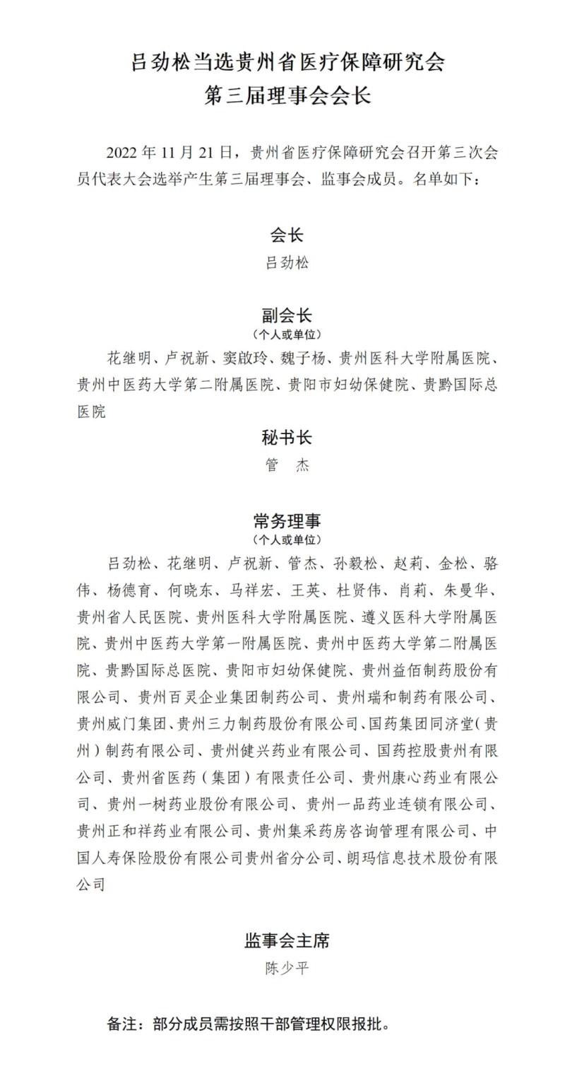 吕劲松当选贵州省医疗保障研究会第三届理事会会长